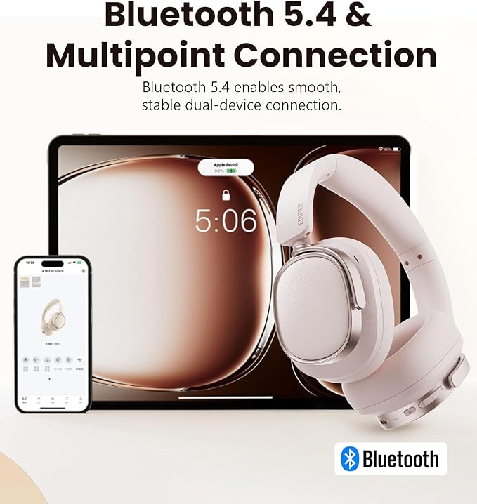 Edifier ES850NB Active Noise Cancelling Headphones, Over Ear Bluetooth Headset, 92H Playtime Wired & Wireless Hi-Res Audio Certified, Fast Charging Clear Calls for Home Office Travel (Pink)