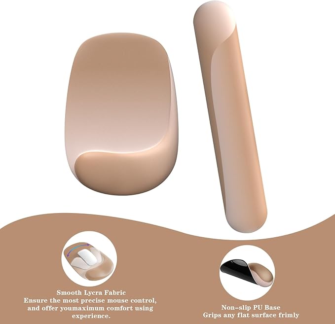 - Super Non-Slip Base: The bottom of mouse wrist rest and wrist pad for keyboard adopts anti-skid natural rubber material. It can firmly grasp the desk to prevent sliding, enhancing comfort and focus during work or gaming without frequent adjustments.