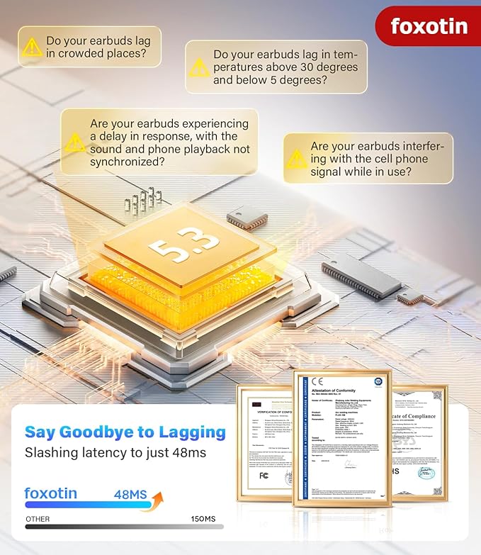 - Bluetooth 5.3 Wireless Earbuds for Superior Connectivity - Engineered with the latest Bluetooth 5.3 chip, the ear buds deliver ultra-low latency of just 48 ms, ensuring uninterrupted calls and lag-free audio whether you're in a meeting, at the gym, or on the go. After the initial setup, these Bluetooth headphones automatically reconnect when removed from the case, allowing you to instantly resume your music or calls without delay.