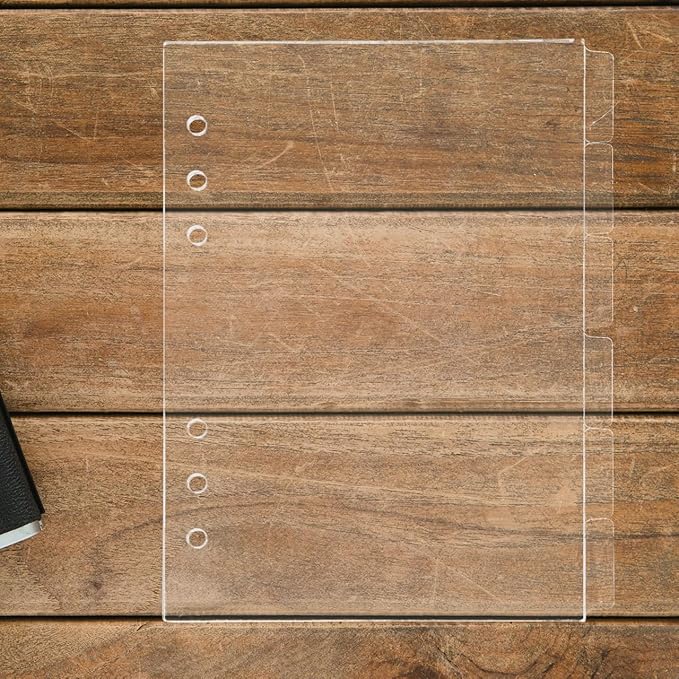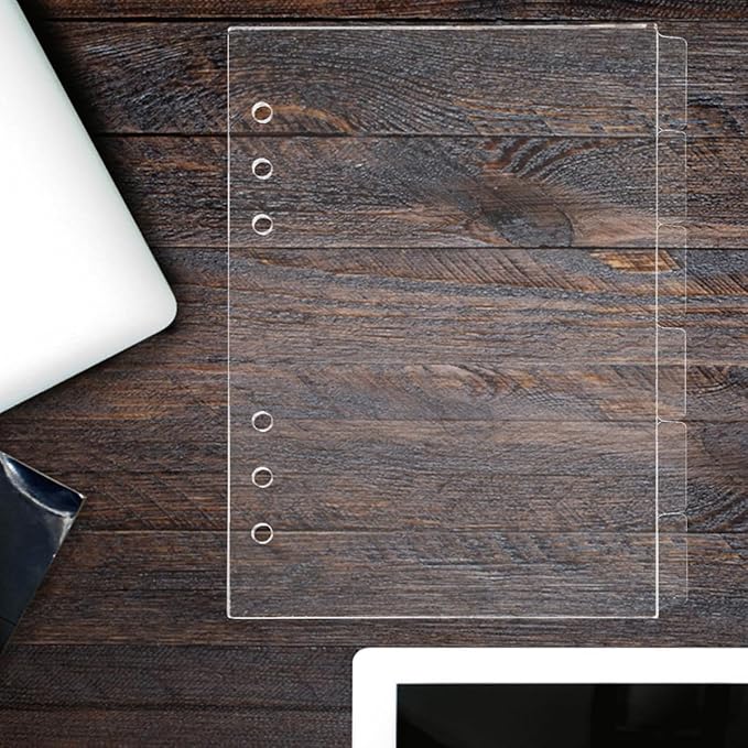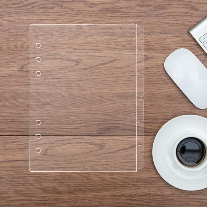 Housoutil A5 Acrylic Notebook Binder Insert, 6PCS Clear Binder Dividers with Tabs, Sturdy Plastic Refillable Sheets for DIY Journal and Office Use, 6 Hole Punch