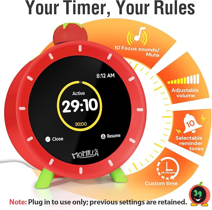 - Multi-Scene Use: MOMILLA visual timer is ideal for helping kids stay focused during study sessions, assisting teachers in the classroom, timing cooking in the kitchen, or managing workout intervals. The 2-in-1 versatile visual timer and colorful alarm clock for heavy sleepers meet the needs of the whole family.