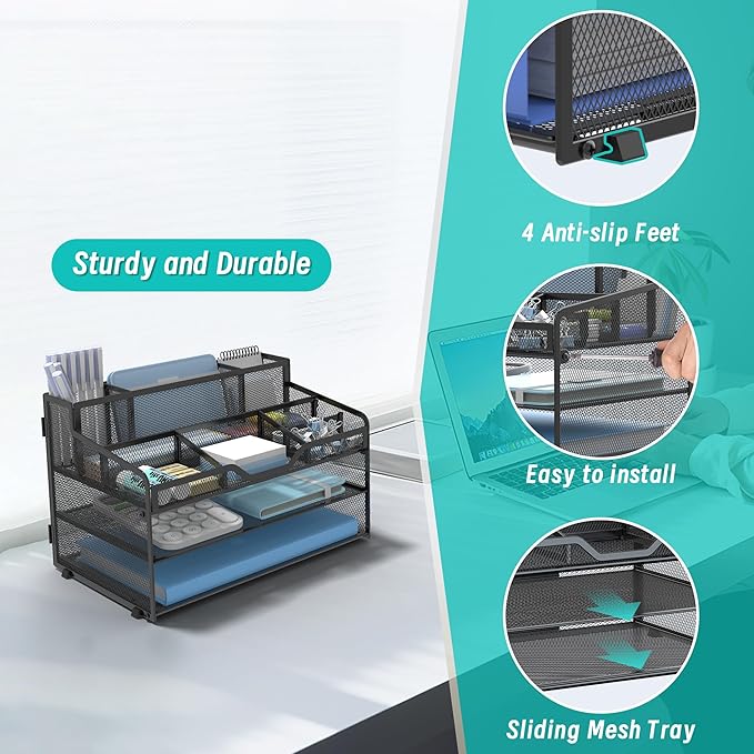 - Sleek Form Meets Everyday Function: The OrgMate desk organizer features a black finish that enhances any office style. 3 built-in pen holders keep your writing tools at your fingertips, while the contemporary mesh design adds a stylish edge and ensures items stay in place, creating a clean, professional workspace that inspires efficiency