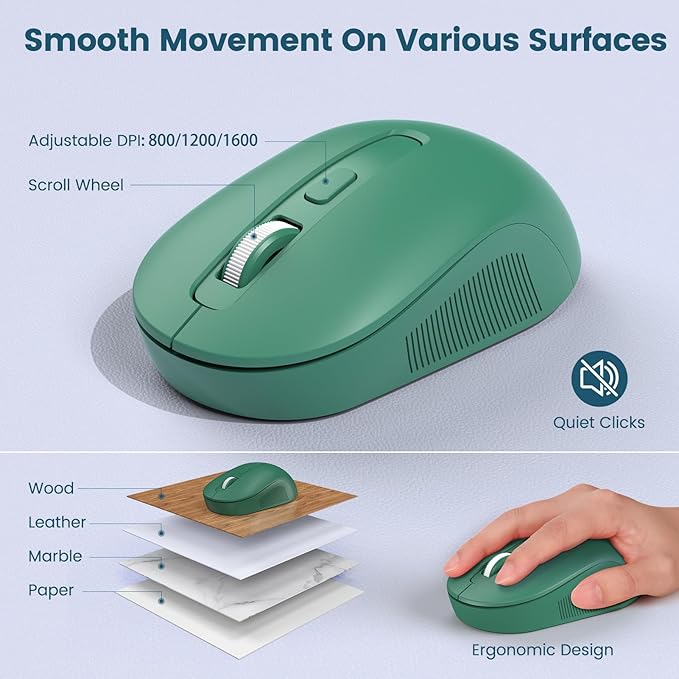 - School Essentials & Desk Accessories: The stylish keyboard and mouse combo allows you to use your laptop comfortably while having the freedom of wireless. It is a must-have for back-to-school, and also a stylish and practical holiday surprise and office space decorations.