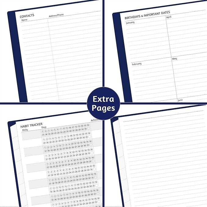 - EXTRA PAGES: This monthly planner 2026-2030 also contains Birthdays & Important Dates pages to keep track of family birthdays, anniversaries or special days. Yearly Overview and Holidays Pages for easily tracking. Habit Tracker, Passwords pages, Contacts pages and extra Notes page are also included for your various needs.