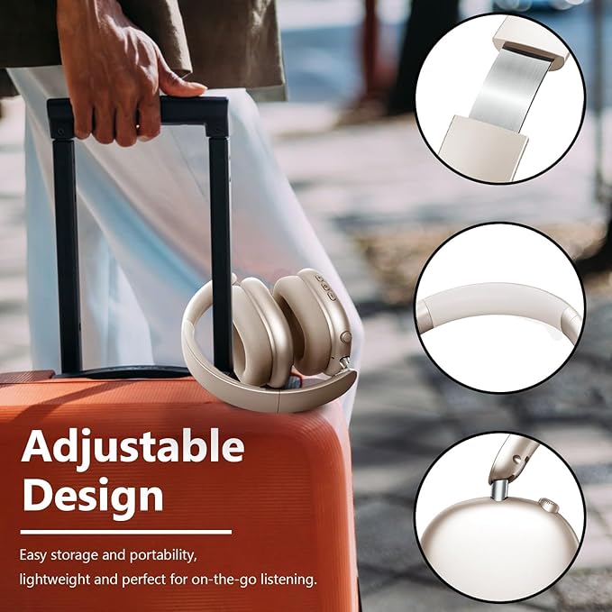 Y01 Wireless Over Ear Headphones, Noise Canceling Bluetooth 5.3 Headphones with Microphones,Hi-Res Audio,48H Playtime,Foldable,Breathable Soft Earpads for iOS/Android/Samsung/PC-Starlight