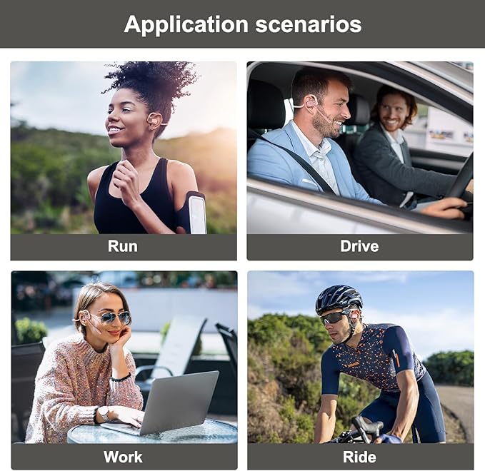- [All-day comfort]: Compared to over-ear and in-ear headphones, open ear headphones offer enhanced comfort for prolonged wear without causing discomfort. Moreover, when engaged in outdoor activities such as running, cycling, hiking, or driving, open ear headphones enable you to remain aware of your surroundings, ensuring safety.