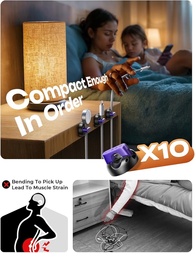 - Compact, Tidy Up Any Space: Measuring just 0.85" x 0.85" x 0.55" and weighing only 3g, LISEN cold holder is perfect for narrow spaces. With 8 individual clips included, you can neatly arrange cables on desks, nightstands, walls, or even in your car. This versatile organizer is a must-have accessory for keeping your space clean and clutter-free