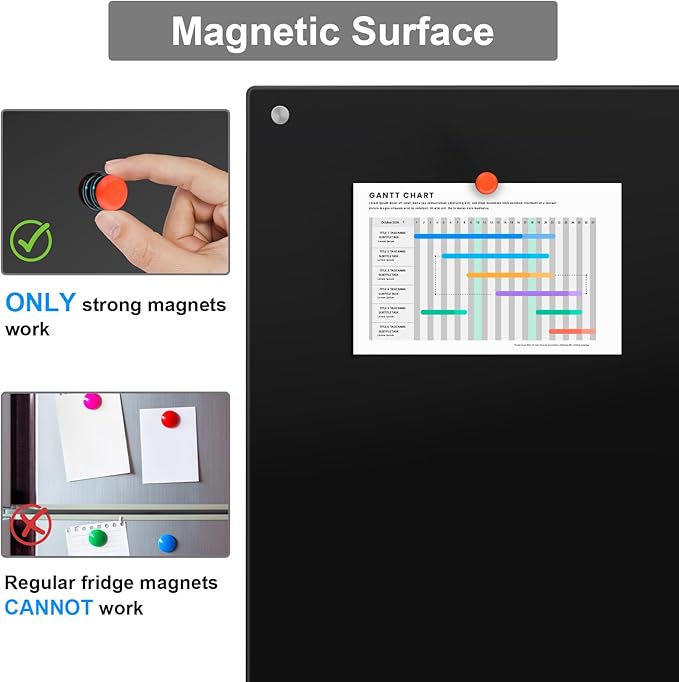 - **Magnetic Surface**: Unlike ordinary boards, this glass dry erase board supports magnets, allowing you to easily attach notes, reminders, or photos.