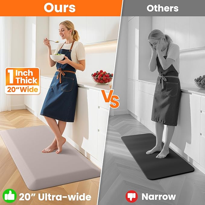 - Ultimate Comfort with 1-Inch Extra-Thick Cushioning: Experience all-day relaxation with TranquilMoments kitchen mats, engineered with an ultra-comfortable 1” thick cushion. Available in generous sizes—20" x 32", 20" x 39", and 20" x 72". Ideal for cooking, cleaning, or working at a standing desk for extended periods