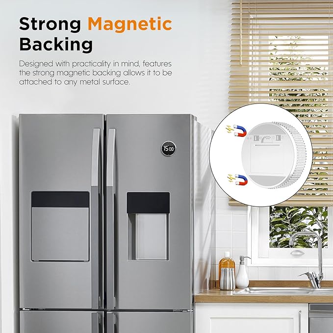 - 【Strong Magnetic Backing】: This magnetic timer is equipped with strong magnets on the back, allowing it to stick securely to any metallic surface such as a refrigerator, oven, or whiteboard, and the magnet is strong enough to hold so that you DON’T have to remove it from the fridge door to set the timer. It's a convenient timer that’s always within easy reach and visible when you need it.