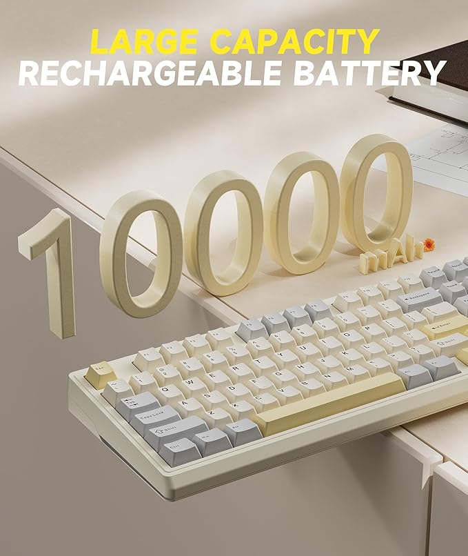 - Triple-mode Connectivity & Long-lasting Battery:The KI99pro wireless gaming keyboard supports BT5.0/2.4GHz wireless/Type-C wired connections, with a stable signal transmission up to 10M. Compatible with Windows and macOS systems, it’s suitable for pc/laptops/smartphones, etc. Equipped 10,000mAh high-capacity battery, it reduces charging frequency and enhances usability, ensuring reliable performance during work and gaming