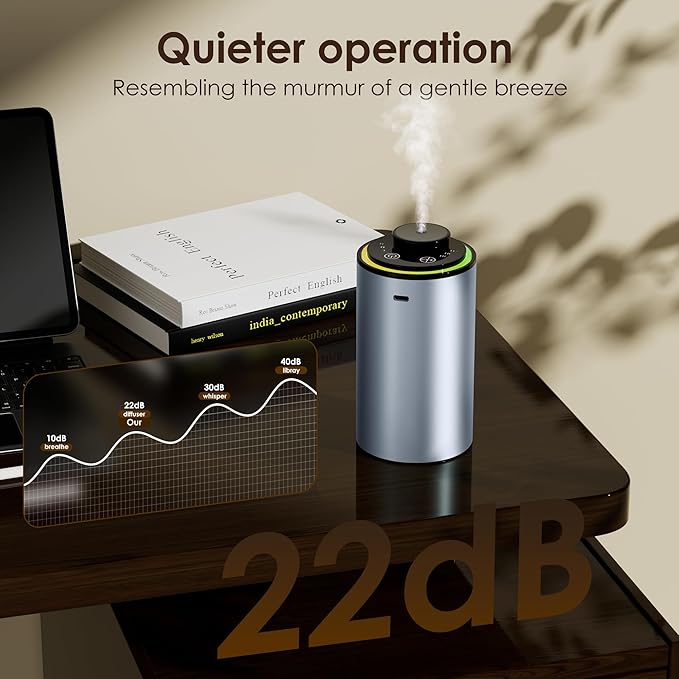- Quiet Motor Operation: Our Essential Oils Diffusers for Home use a carbon brush motor with a unique, professional low-noise design. Operating at less than 30 dB, it is quieter than most appliances. The Diffusers for Essential Oils can quietly release the aroma of essential oils in any environment without disturbing you. It is suitable for offices, bedrooms, living rooms, and even bathrooms.
