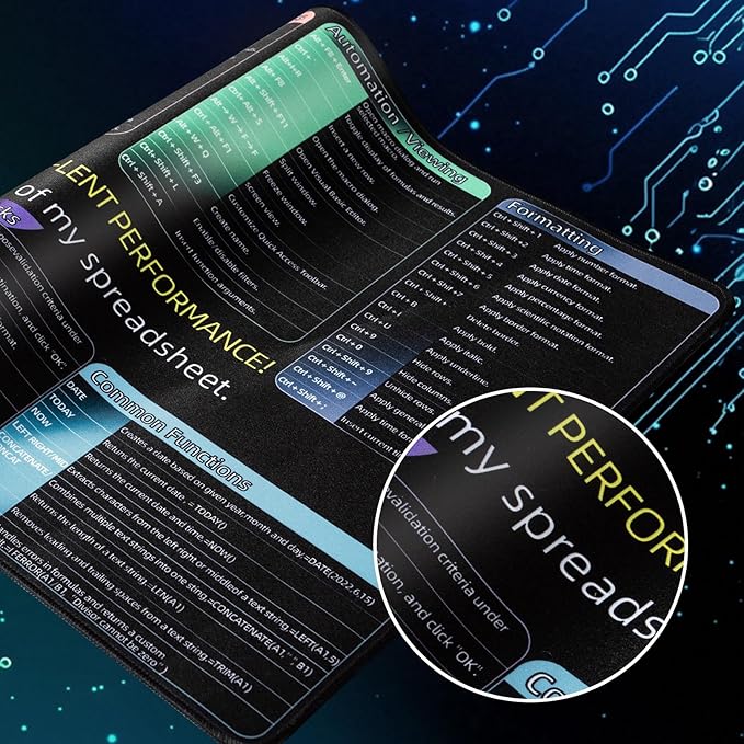 iCasso Excel Cheat Sheet Desk Pad, Excel Mouse Pad Shortcuts, Excell Short Cut Desk Mat, Extended Large XXL Non-Slip Exel Mousepad with Stitched Edges for Computer Keyboard(Colorful)