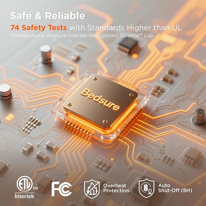 - Safer & More Reliable: Conducted in Bedsure Intertek-Recognized Satellite Lab, 74 safety tests with standards surpassing UL ensure safer performance. This Christmas blanket is ETL and FCC certified, and its default 8-hour auto shut-off prevents it from overheating so that you can enjoy warmth with complete peace of mind