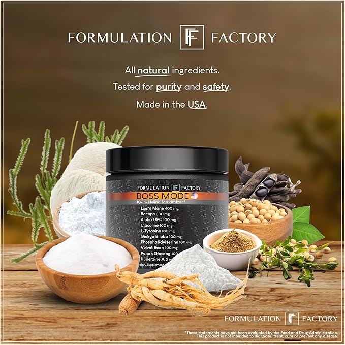Boss Mode 10-in-1 Nootropic Cognitive Enhancement Supplement, Focus & Memory Booster, Featuring Lion’s Mane, Bacopa Monnieri, Alpha-GPC, Ginseng & More 120 Capsules (1 Pack)