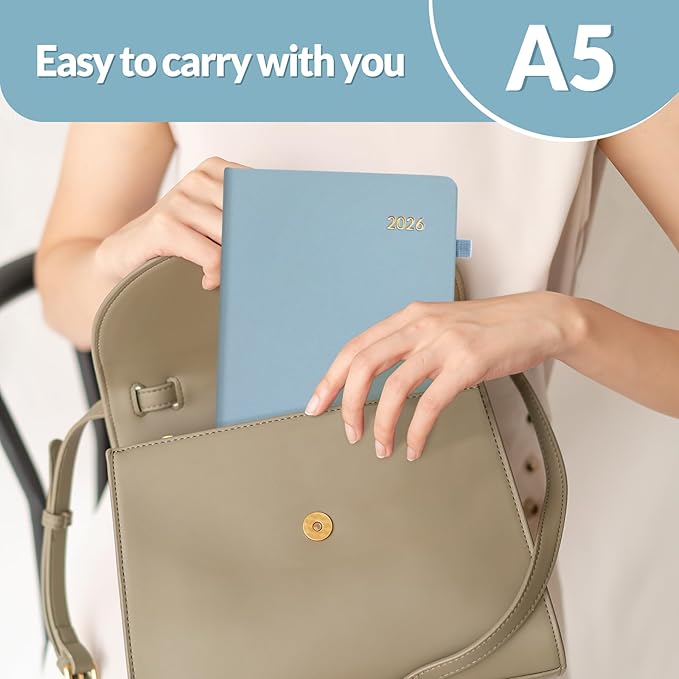 SUNEE 2026 Weekly & Monthly Hardcover Planner 5.5" x 8.3" - 12 Month (January 2026 - December 2026), Small Hardcover Planner, Pocket, Notes, 100 GSM Paper, Gray Blue