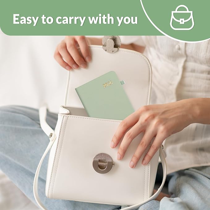 SUNEE 2026 Pocket Weekly Planner for Purse 3.5" x 6" - 12 Month (January 2026 - December 2026), Small Size Planner, Hardcover, Notes, Pocket, 100 GSM Paper, Sage Green