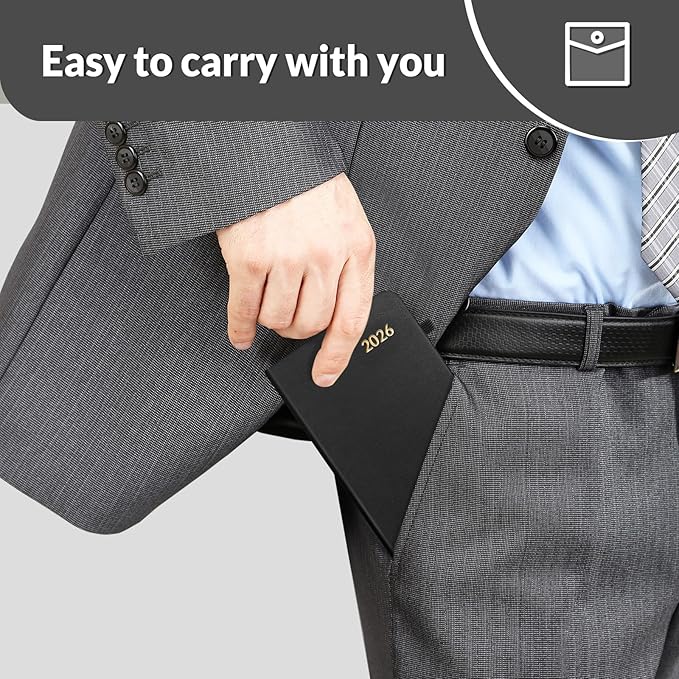 SUNEE 2026 Pocket Weekly Planner for Purse 3.5" x 6" - 12 Month (January 2026 - December 2026), Small Size Planner, Hardcover, Notes, Pocket, 100 GSM Paper, Black