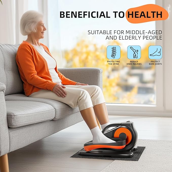 - Quiet Operation & Portability Built with sealed bearings + steel flywheel for ultra-quiet performance (<15dB), allowing distraction-free use during work, TV, or reading. Fully assembled and ready to use, it features wheeled handles for easy mobility and a compact design for small spaces. The smooth circular motion improves cardiovascular health, while footpad textures stimulate reflex zones, combining fascia relief and weight management