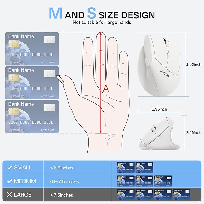 PHILIPS Ergonomic Mouse - Vertical Mouse with 800/1200/1600 Adjustable DPI, 6 Silent Buttons, Auto Power Saving,Light Weight,2.4GHz Wireless Mouse for Laptop,Desktop, PC- White