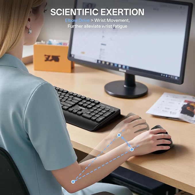 - Vertical design,reduce wrist fatigue - Say goodbye to the traditional mouse's “slumped” position! This 57° ergonomic vertical mouse naturally fits the palm like a hand grip, allowing the arm and wrist to maintain a relaxed state, long time office, game is not sore and not tired
