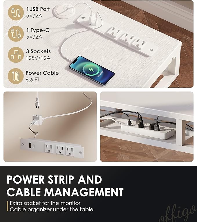 - Electric Height Adjustment: The height adjustable standing desk allows you to customize the usage height from 29.9" to 46.1" by using the 3 preset electric buttons for optimal comfort. It equipped with 3 Outlets & 1 USB & 1 Type-C ports, providing convenient charging options for devices at work or play
