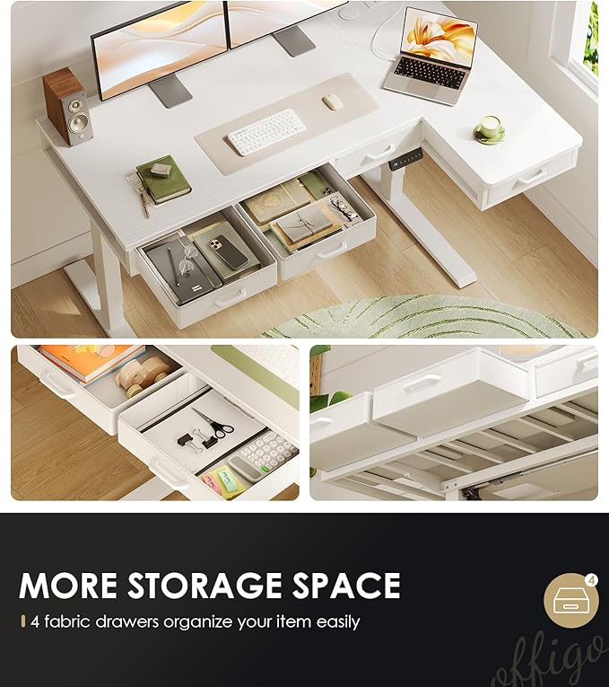 - More Storage Space: This OffiGo standing desk comes with 4 fabric drawers, providing more storage space for office and study accessories and keeping your desktop more tidy and clean