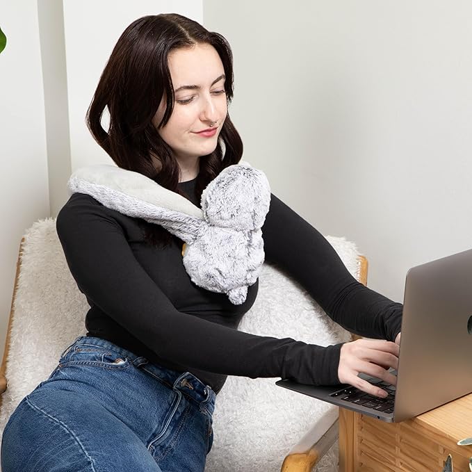 - A perfect comforting gift for kids, teens, and adults that hugs them when you can’t. Portable and easy to pack: bring along to ease jitters at appointments or soothe neck and shoulder stress during travel!