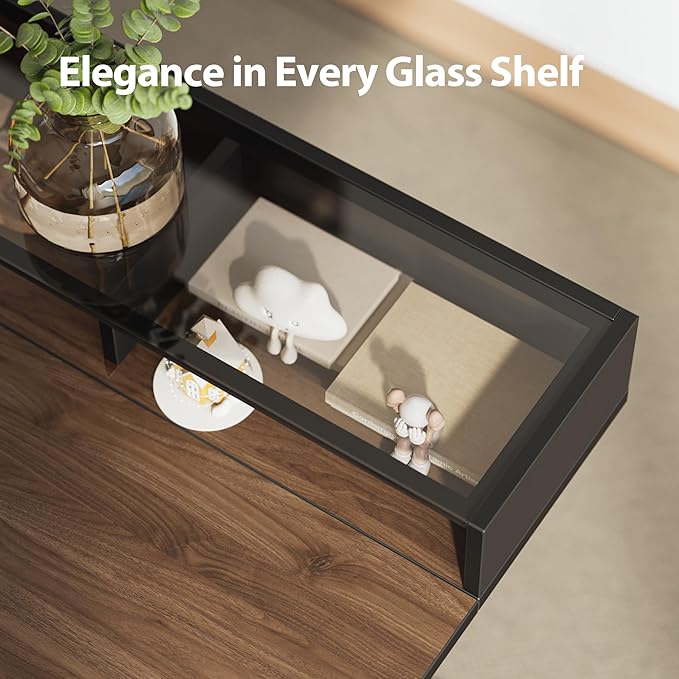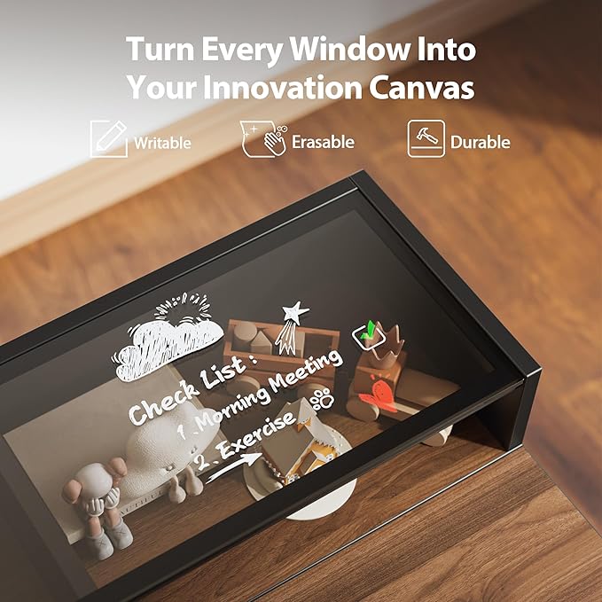 - 【Premium Glass Top Shelf】With its fluid lines and graceful form, the glass shelf transforms your workspace into a vision of modern elegance. The sleek, tempered glass surface not only exudes style but is always ready to capture every spark of inspiration with effortless ease.