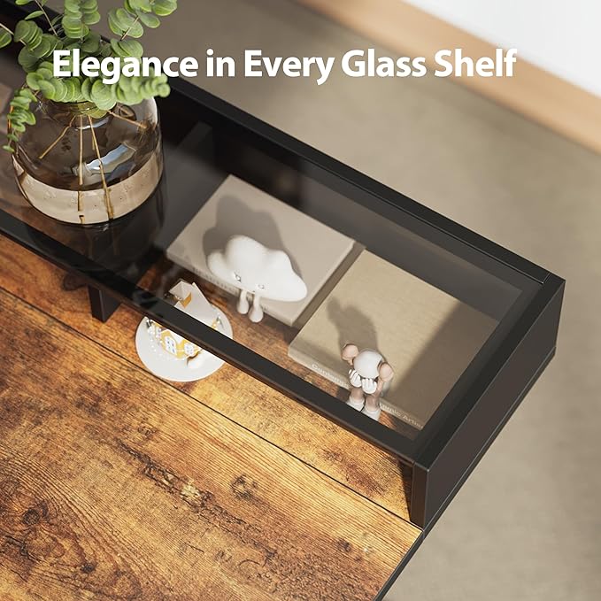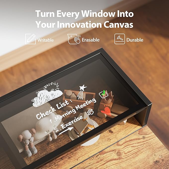 - 【Premium Glass Top Shelf】With its fluid lines and graceful form, the glass shelf transforms your workspace into a vision of modern elegance. The sleek, tempered glass surface not only exudes style but is always ready to capture every spark of inspiration with effortless ease.