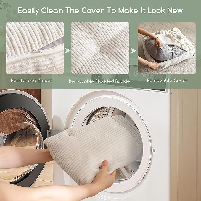 - 【MACHINE WASHABLE DESIGN AND METICULOUSLY CRAFTED】 Made of soft corduroy fabric, soft to the touch, you only need to press the cushion hard to undo the nail buckle, easy to move the cover, and you can quickly install it after washing to make it brand new. A handle is designed for you to conveniently carry the sitting cushions wherever you go. Reinforced with tufted buttons and piping stitching to resist deformation while elevating visual appeal.