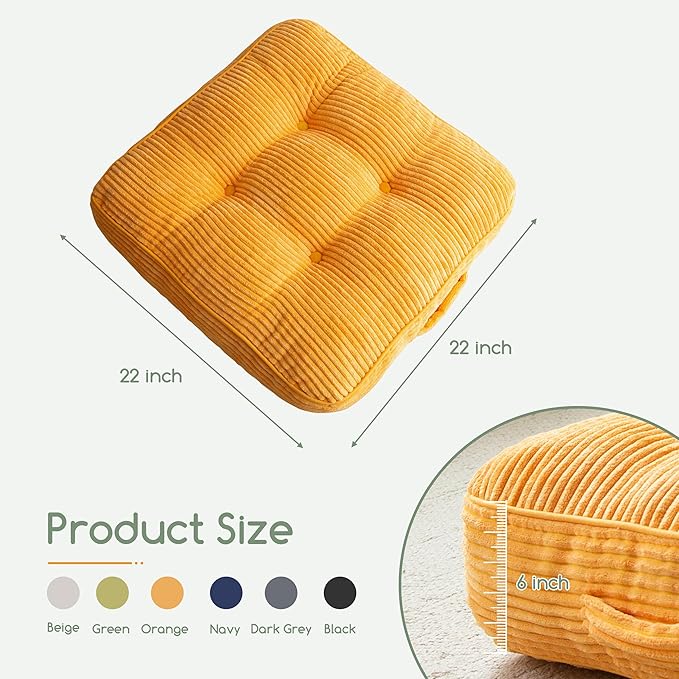 6" Washable Floor Pillow Cushion for Adults, Meditation Cushion Pillow, Large Square Floor Sitting, Removable Tufted Corduroy Cover, for Tatami Living Room or Yoga, 22x22 Inch, 2Pack, Machine Washable