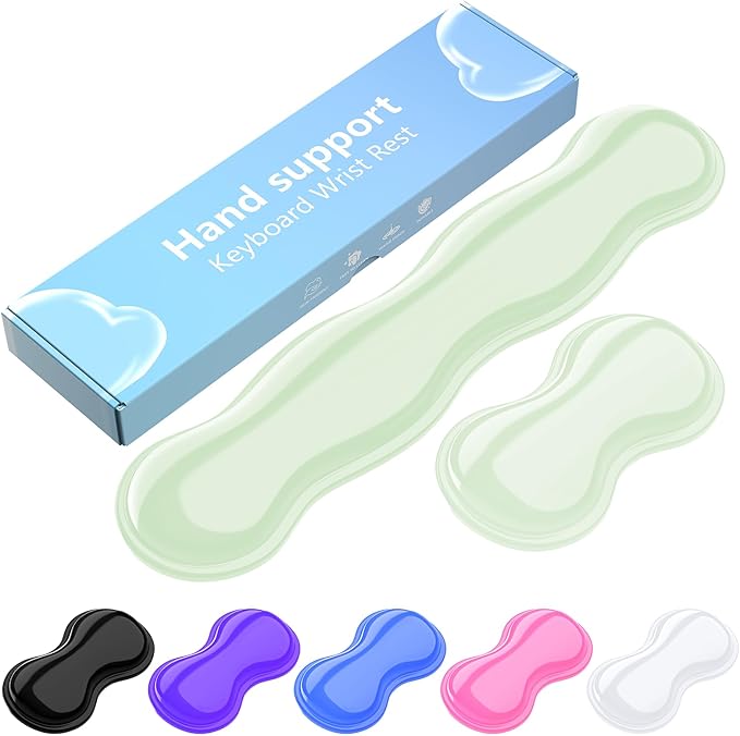 - ULTRA COMFORTABLE GEL SUPPORT – This keyboard and mouse wrist rest set is designed with soft gel pads to cushion your wrists while typing or gaming, reducing stress and fatigue, allowing you to stay comfortable during long hours of work or play.