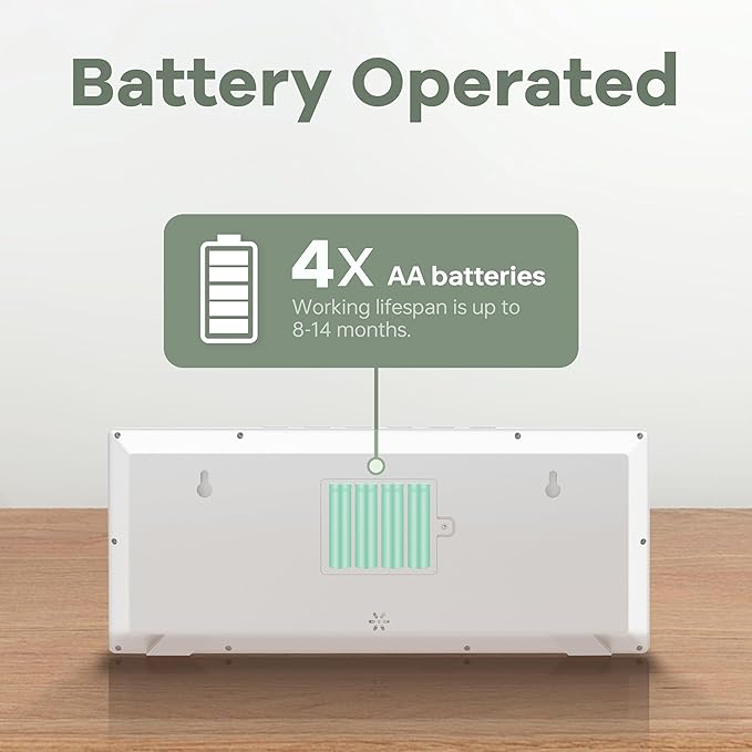 - 【Wireless & Long Battery Life】It's battery operated, you don't need to plug in anymore. It works with 4 AA batteries, lasts up to 8 - 14 months. No worry for the electricity outage.