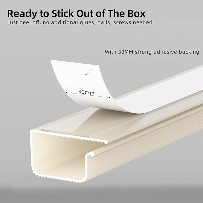 - Quick Installation, Damage-Free Removal - Each wire organizers for cords comes with pre-applied adhesive tape, allowing you to skip the complex installation process. Simply peel off the protective film and adhere the desk cord organizer to any smooth surface for a robust installation. With a little heat from a hairdryer, you can easily remove the cable raceway without tools, leaving no residue and preserving the condition of your furniture and walls