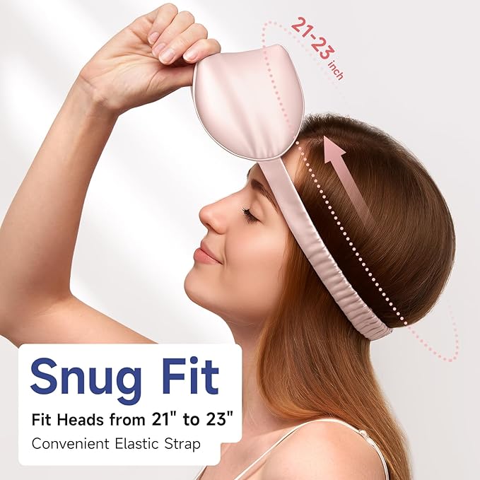 - Tips: Our sleep mask measures 8.27"L x 3.74" W. The Pink and Purple sleep mask features a stretchy elastic strap for heads 21"-23". The Black sleep mask features an adjustable buckle strap, fitting heads 18"-26". Please measure your actual head size to ensure a proper fit