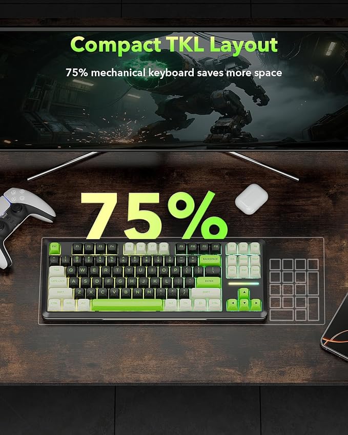 - 【87-Key TKL Layout】 With full key rollover, K734WCG gaming keyboard balances practicality and functionality. It has dedicated arrow, FN multimedia, and control keys, providing more space for mouse movement than a traditional 104-key layout, all while ensuring gaming-grade performance.
