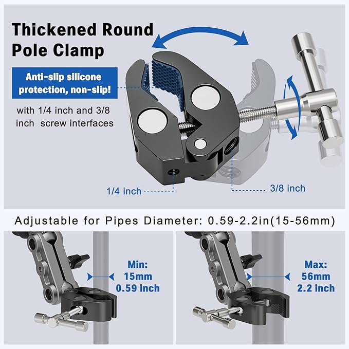 - Multi-Functional Clamp: This versatile iPad mount securely attaches to tubes (0.59"-2.2" / 15-56mm diameter) and flat surfaces (up to 2" / 50mm thick). Perfect for mic stands, treadmills, Peloton bikes, tripods, strollers, boats, golf carts, exercise bikes, shopping carts, music stands, drum kits, vehicles (Jeep, truck, motorcycle), forklifts, and more!