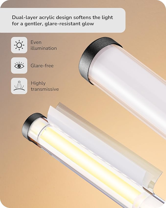 - [Soft Light & Metal Base] This bedside table lamp comes with a double-layer acrylic shade for a gentler glow and a sturdy metal base that keeps it stable and prevents tipping during use, provides much safety