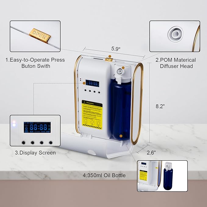 - No mess, no noise, natural and safe: The cold air diffuser releases pure and dry fragrance mist through atomization, avoiding any dilution of the essential oils with water. Therefore, you can enjoy pure essential oils that are completely safe for your family and pets. Simply add your favorite essential oils and you can experience all the benefits of the fragrance, enjoying a 5-star hotel experience anywhere.