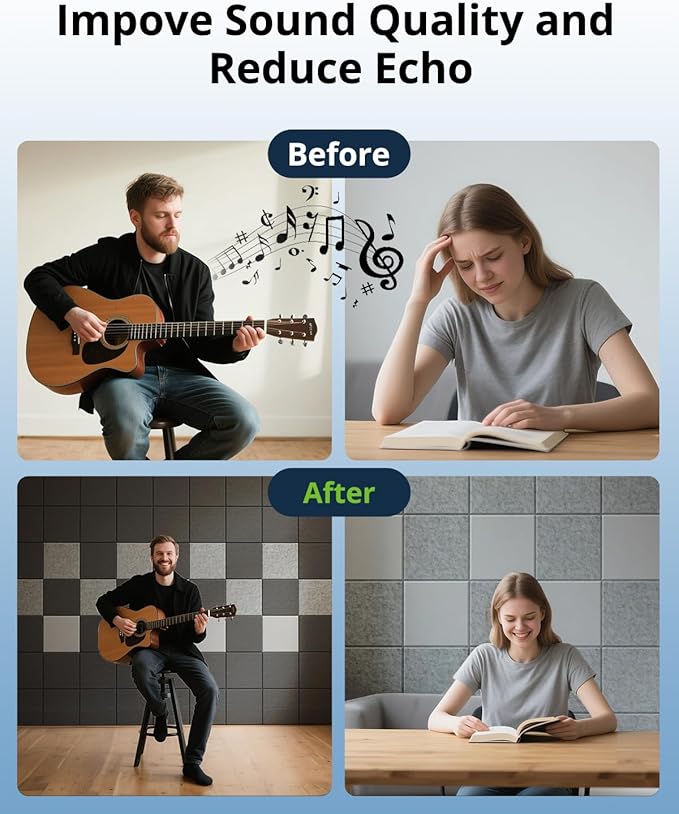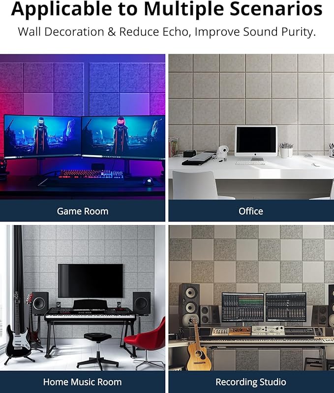 - Safe And Odorless: The material of the sound dampening panels is safe and non-irritating, with no odor, creating a comfortable and healthy environment for you.The safe material of acoustic wall panels makes it completely suitable for use in children's rooms or pet rooms, so you can use sound absorbing panel with peace of mind without worrying about disturbing others with noise