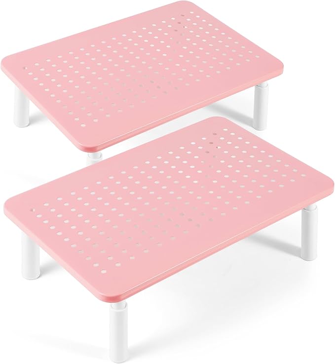 - Ventilated Platform Increased Airflow Prevents Overheating monitor stand: Large sturdy platform with vented holes, this stand will prevent overheating and keep the device running cool. Our adjustable monitor riser is made of podwer coated steel with a perforated mesh hole platform that improves air flow going towards your device. The holes also help to prevent dreaded overheating and keep your computer cool and in peak working condition