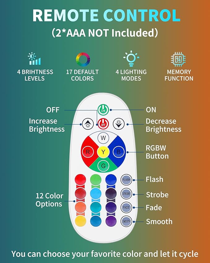 - 4 Dynamic Modes & 4 Brightness: Transform any space: FLASH (rapid bursts), STROBE (pulsing breaks), FADE (gentle gradients), SMOOTH (slow blends). Perfect for gaming setups, holiday decor, yoga, and sleep aids. Dimmable brightness for different scenes, as kids small table lamp, adults office ambient lighting, nightstand lamp for bedroom, etc.