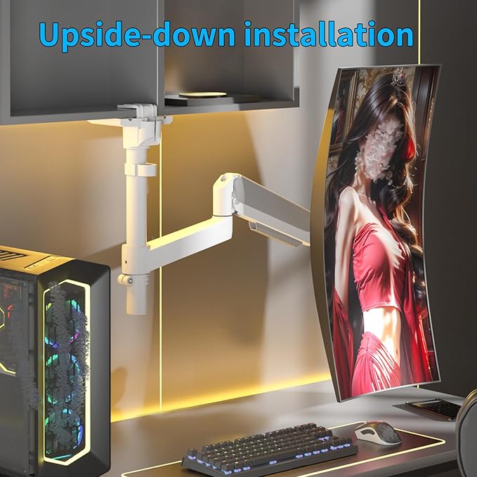 - High-Quality Desk Mount: Constructed with sturdy materials like high quality steel and aluminum, it has passed 30,000 motion tests to ensure long-lasting durability and reliable performance.Besides,featuring a bionic cantilever that rotates smoothly and hovers freely for monitor stability. The premium spring assist arm counterbalances monitor weight for ergonomic height adjustments, making it ideal for office,home and gaming setups and ensuring worry free use