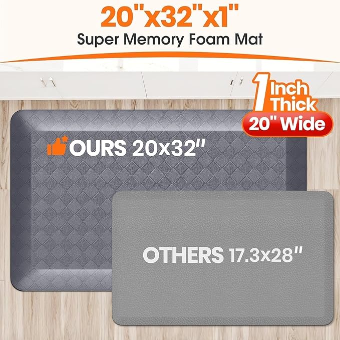 StepRite 1” Thick Kitchen Mats for Floor, Anti Fatigue Kitchen Rugs, Non-Slip,Heavy Duty Waterproof Kitchen Rug, Standing Desk Mat for Home, Kitchen, Office, (Grey)