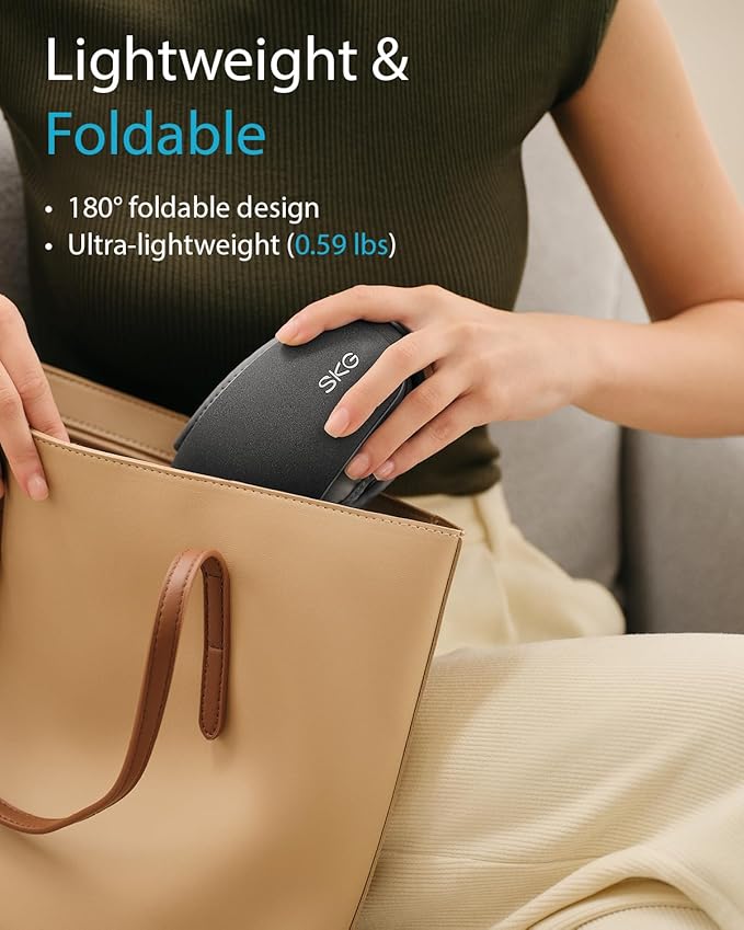 - Experience Spa-Level Relaxation with Ultra-Quiet Comfort: Feel the stress melt away with the SKG Eye Massager —engineered with an ultra-quiet 40dB motor for a peaceful escape. This smart eye mask delivers a 3-in-1 experience: gentle air compression massage, warm heat therapy, and calming music to ease headaches, relieve eye strain, and reset your mood. Whether you're unwinding after work or prepping for sleep, it’s like having a personal spa—wherever you are.