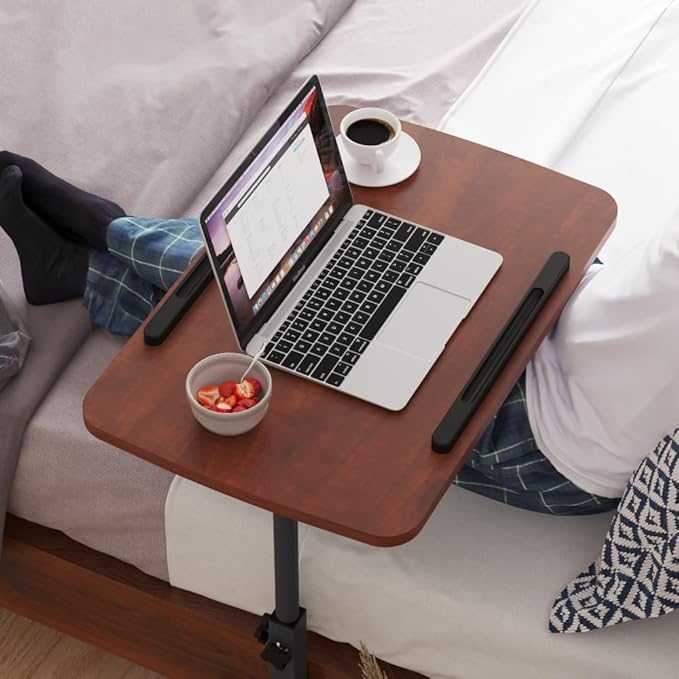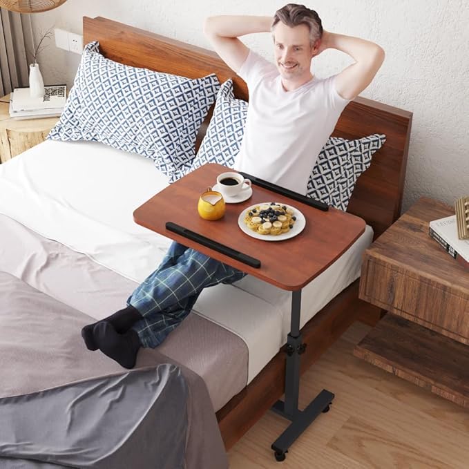Laptop Table Mobile Adjustable Height Portable Desk Notebook Swivel PC Computer Rolling Desk with Wheels, Laptop Stand for Couch Bedside Hospital Bed Table (Dark Walnut)