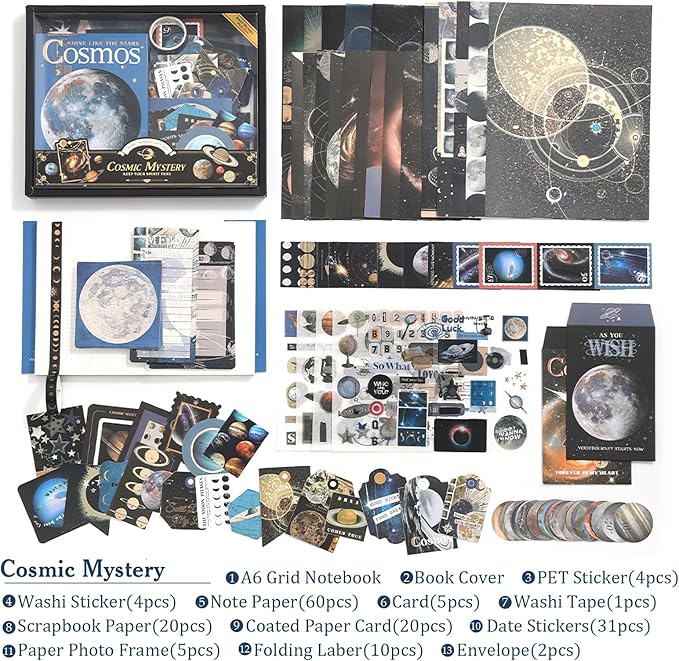 Scrapbooking Supplies Kit: Vintage Aesthetic Scrapbook Kit, Junk Journal Supplies with Scrapbook Stickers Paper, Journaling Supplies, Birthday Craft Gift for Adult Teen Girls Kid, Cosmic Mystery