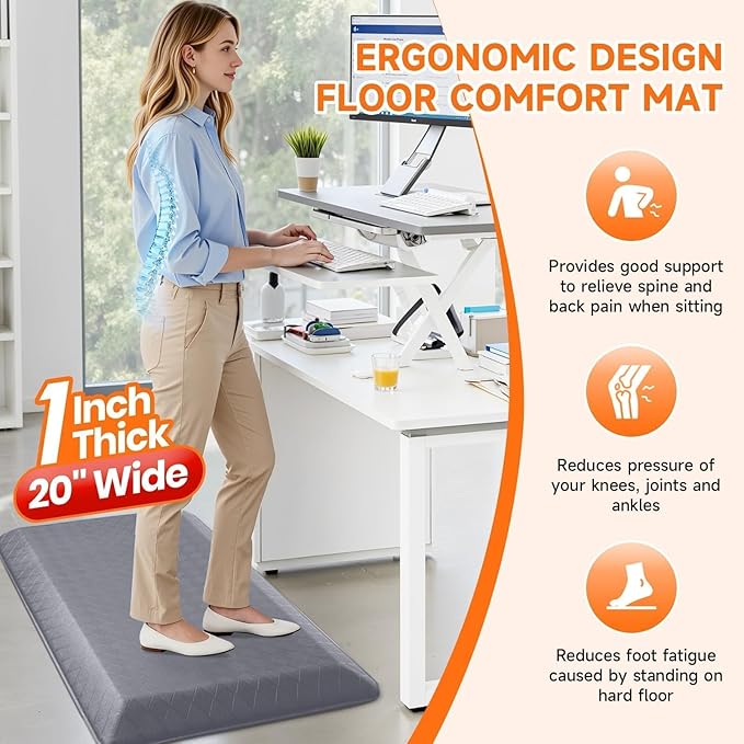 - Multi-use Mat: The anti-fatigue mat is versatile enough to be used in a variety of settings, including the office, kitchen, laundry room, or workbench. Its neutral color complements any home decor and can be placed anywhere, increasing productivity and comfort wherever you need it