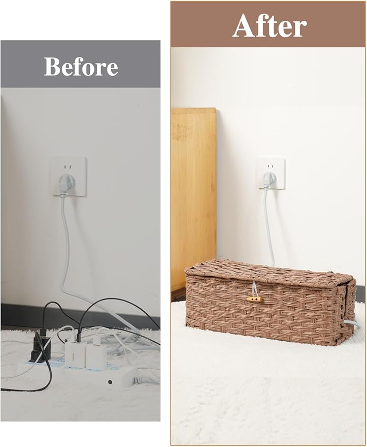 - šššš¢šš¢šš§š šššš šš¢š¬š¬š¢š©ššš¢šØš§: Crafted from airy handmade woven rattan, this cable management box naturally promotes heat dissipation. This floor cord hider box allows for excellent airflow, keeping your electronics cool, making everything safer to use. Say goodbye to overheating worries!